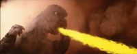 In Godzilla vs. Mechagodzilla, Fake Godzilla fires a yellow laser beam from his mouth meant to emulate Godzilla's atomic breath. This beam destroyed several buildings at an oil refinery in a single blast, and was also shown to hurt Godzilla. Mechagodzilla does not reuse this attack after removing its disguise.