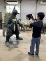 Unlike Nakagawa's previous shorts, which were filmed outdoors on open sets, Fest Godzilla 3 was primarily shot indoors on Toho Studios' 6th sound stage.[4] After two days assembling the miniature set,[4] the staff began shooting on September 27, 2022.[1] The majority of filming concluded that September 29,[5] with a few outdoor shots taken on October 1.[6]