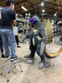 A campaign to raise money for both the construction of a replica Gigan suit and the production of a film involving it was posted to Japanese crowdfunding website Ubgoe on April 1, 2022. The campaign concluded that May 31, failing to reach its ¥15 million goal but nonetheless accruing ¥11,504,405 from 642 backers.[2] With the announcement of Godzilla Fest 2022 on September 20 of that year,[3] the film was revealed to be the third in a series of festival originals directed by Kazuhiro Nakagawa which began in 2020.