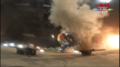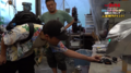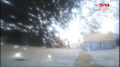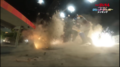 As Godzilla makes his way through a Japanese city, Jet Jaguar is scrambled to engage him. The robot descends from the sky and touches down in front of him, entering a battle stance. Godzilla repeatedly fires his atomic breath and Jet Jaguar runs towards him, dodging each blast. The robot reaches the kaiju and knees him in the chest before locking hands while Godzilla pushes him backwards. Jet Jaguar throws off Godzilla's hands, punches him several times, and ducks under a claw swipe as he kicks the reptilian. Godzilla retaliates with a slash from his claws and kicks his opponent away, but Jet Jaguar runs back to him and delivers a leaping punch. Godzilla knocks him down and tries to hit Jet Jaguar with his tail, but the robot dodges it, jumps, and spin-kicks Godzilla in the face mid-air, knocking him to the ground. Jet Jaguar lands and Godzilla returns his feet, roaring. The two charge and lock hands again, with Godzilla throwing Jet Jaguar to the side and firing his atomic breath, but the robot dodges and answers with kicks and punches. Again, Godzilla attempts to use his atomic breath, but Jet Jaguar ducks and grabs Godzilla's tail as it is swung at him.