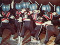 The original Flashers who donned blue eyed heads were created by King Flasher to do his bidding. They would often act as henchman and rarely appeared without accompany from a kaiju. Despite this, they have had encounters with the Human brothers Junichiro and Junjiro Iwaki on multiple occasions. Later on, the Flashers were upgraded to Flasher Red Eyes (フラッシャーレッドアイ Furasshāreddoai) whose eyes were recolored red, leaving the original blue-eyed Flashers mostly obsolete.