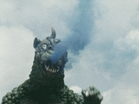 - At the end of the Simpsons episode "Thirty Minutes Over Tokyo," Gamera, Rodan, Mothra and Godzilla are seen attacking the Simpsons, as Gabara's laugh-like roar is heard.