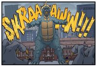 - ↑ Some sources, such as Definitive Edition Godzilla Introduction, give Gabara a height of 53 meters instead of 58. The book All Godzilla Complete Super Encyclopedia (ISBN 4063045579, p. 45) lists his height as 63 meters.
