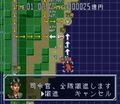 Much like Godzilla 2: War of the Monsters for the NES, Gamera: Gyaos Destruction Strategy is a real-time strategy game in which the player pits the JSDF against Gamera and Gyaos, luring them into a cluster of four blue squares with military units. At the same time, the player must position units, evacuate key personnel, and protect cities. A game over occurs if either the base (brown square) gets destroyed, too many buildings are damaged, or if the player gets the monster into the trap before the preparations are finished (which will be indicated via time at the top of the screen - when it's done, the trap is ready). All game over conditions can actually be turned off when the player first starts the game.