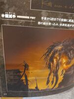 Gamera is able to direct the energy used for his fireballs into his hand, igniting it into a Vanishing Fist (燼滅手 Jinmetsushu, lit. "scorching hand").[21][22] He used this against Jiger to penetrate his energy shield and heat-resistant mucus, burning him from the inside out.[22] In the first half of GAMERA -Rebirth-'s novelization, Gamera initially produced bolts of electricity from his chest which traveled to his arm, producing a large amount of steam.[22] In the second half, Gamera also used this attack against S-Gyaos, but it withstood it with its enhanced regeneration.[1]