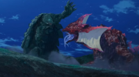 Gamera attacking S-Gyaos with a Plasma Sphere