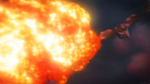After charging up with electricity, Gamera is able to expel a "plasma fireball" called Magma Blaster (火焔弾 kaendan, lit. "flame bullet") from his mouth.[19] Gamera tends to use these as a finishing move, and they are powerful enough to create large explosions, incinerate and vaporize whole body parts of kaiju, and even kill opponents with a single direct hit. He can also rapid-fire these fireballs, though to less devastating effect.