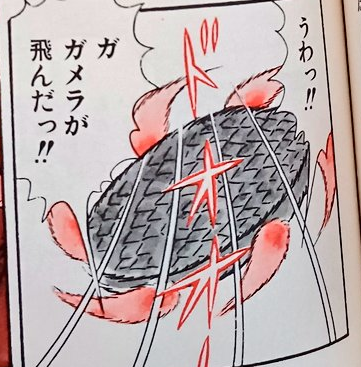 Gamera emitting additional jets from his head and tail holes in the 1984 manga by Tegsuji Kataoka