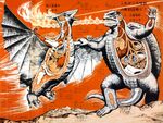 Gamera breathing fire at Zigra in Gamera vs. Zigra.