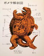 Several anatomical illustrations note that Gamera can emit poison from his claws to stun foes.[23][22]