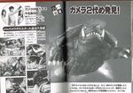 - An original kaiju illustration titled "the most powerful kaiju ever" was published on Kaiju Magazine, an appendix for the youth magazine Shonen in 1967. Composed of multiple different kaiju and yokai characters from different franchises, its hind legs are taken from Gamera, which were described as perfect by the standard of kaiju. These legs are capable of emiting streams of fire for flight at Mach 3 and possess Drill Claws (ドリルつめ Doriru Tsume) that can crush anything.[31]