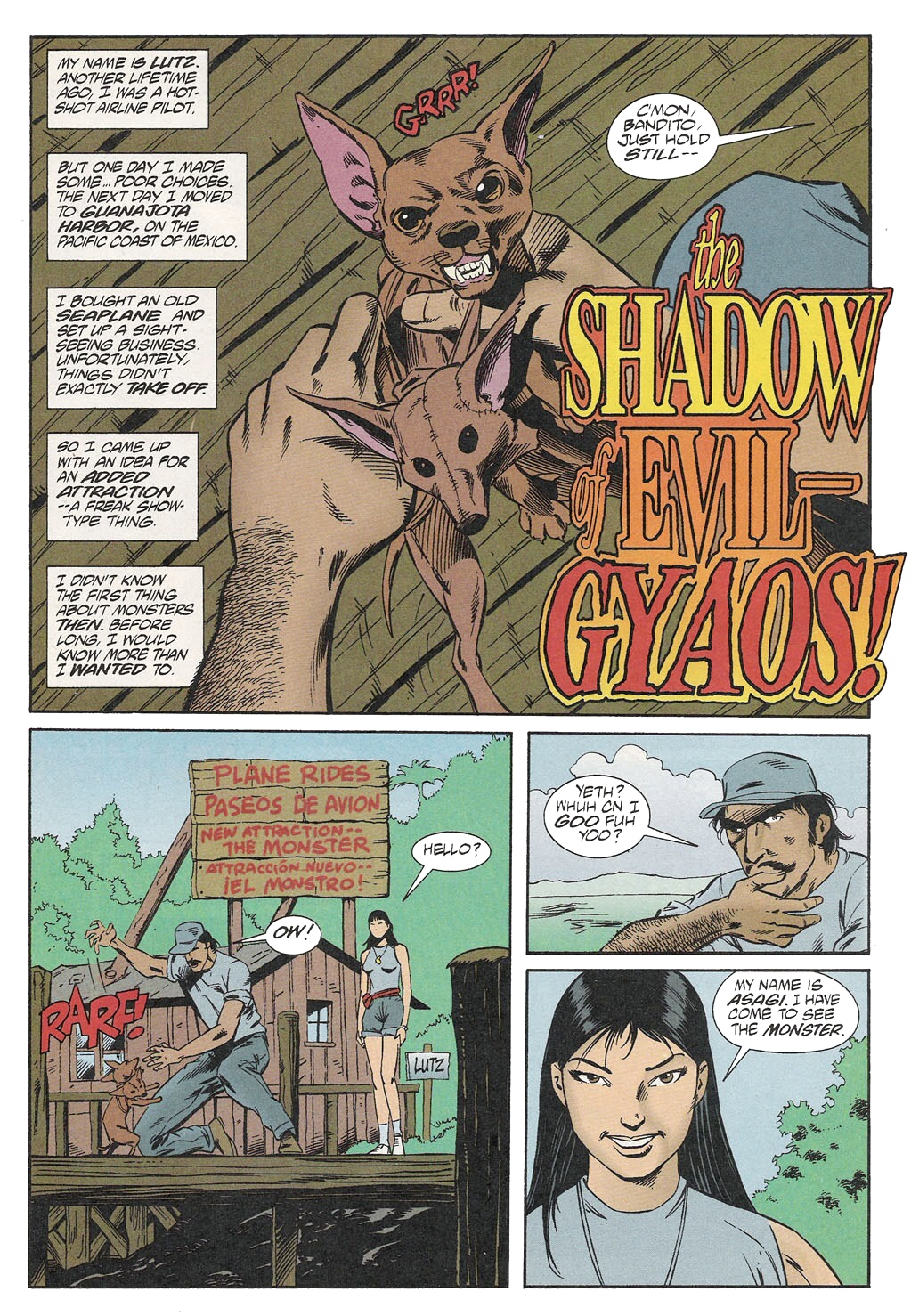"The Shadow of Evil - Gyaos!" is the first issue of Gamera. It was released on August 1, 1996.