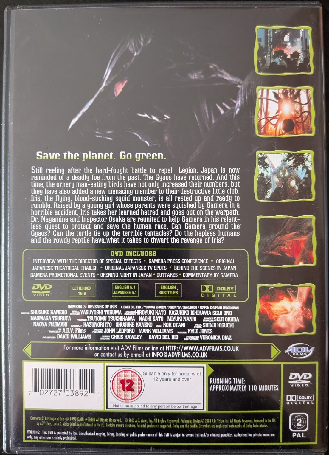 ADV Films UK Gamera 3: Revenge of Iris DVD back cover