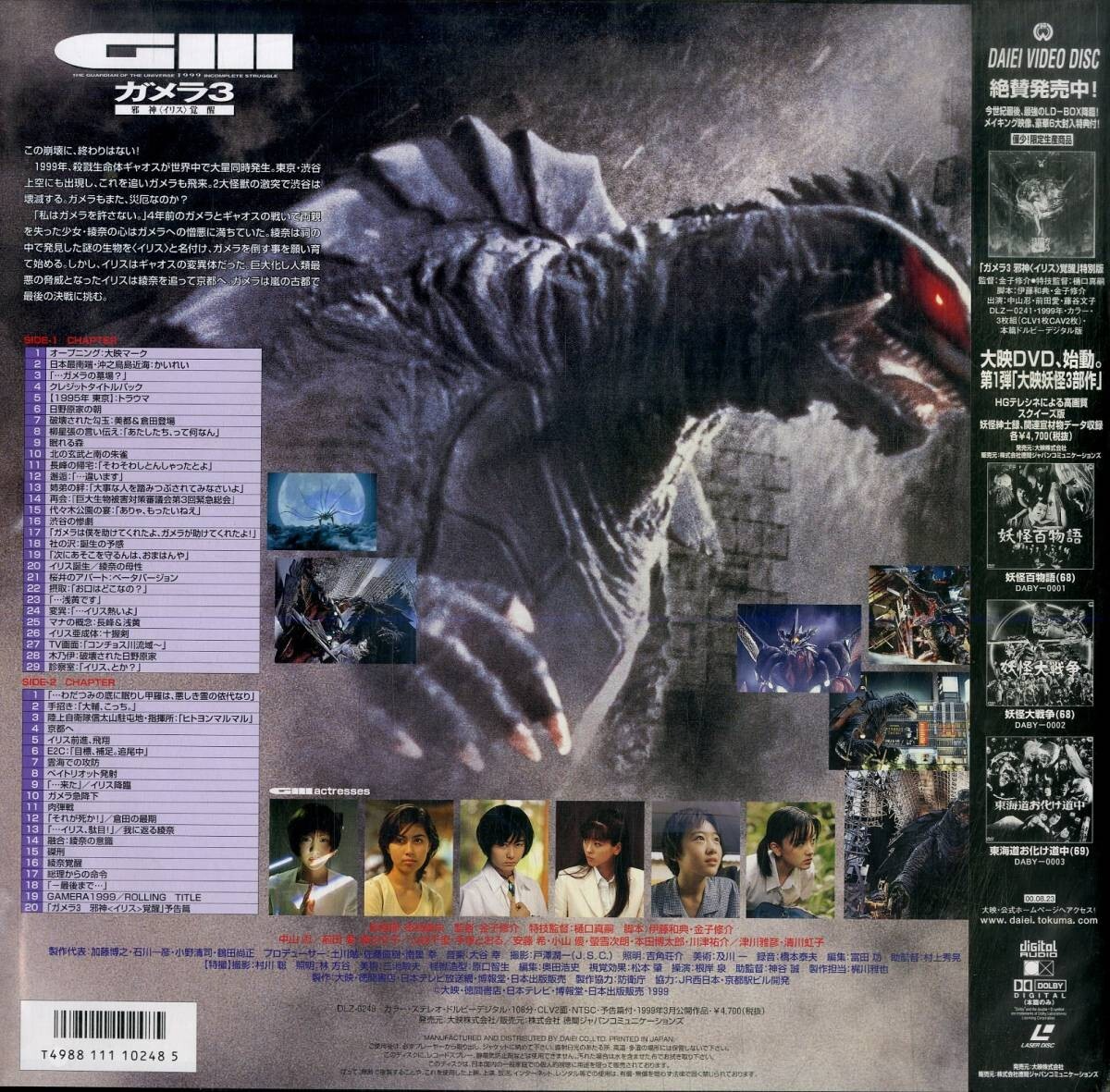 Japanese Gamera 3: Revenge of Iris LaserDisc back cover