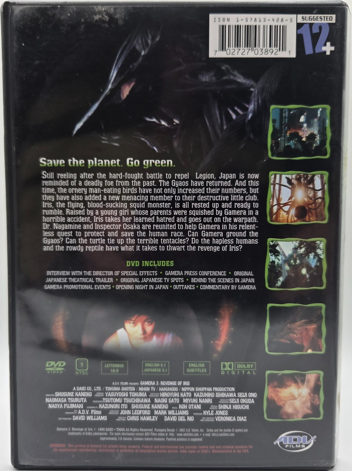 ADV Films U.S. Gamera 3: Revenge of Iris DVD back cover