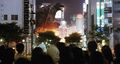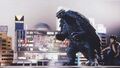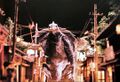 Gamera confronts Iris in the rain-soaked city of Kyoto