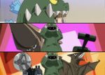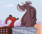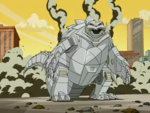 | "Skidzo-Brainia" | 2014/6/27 | When Skidmark mistakes a wire for a giant worm, he imagines it turning into a giant moth that he names Megamoth, clearly referencing Mothra, and mentions that it has a 50-foot wingspan. It destroys a taco stand as it battles a monster based on the giant kaiju toy from the episode "Turbo Drift" (see above) that was a three-way hybrid between Godzilla, Gigan and Guiron, now alive and gigantic, though it uses a different roar this time (for another part of this episode that is not mentioned here, see the Television section of King Kong in popular culture). | ||