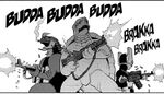 | Dogby Walks Alone | Volume 2 | 2008/01/13 | Abee, one of the members of Squad B, an A-Team inspired group of tokusatsu actors turned mercenaries, dresses as a Gamera-like turtle kaiju. He functions as the group's parody of B.A. Baracus with a fear of trains instead of planes and wearing Mr. T's chains in one of the chapter covers. | |