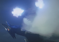 Gyaos cutting a plane in half by using his Sonic Beam