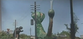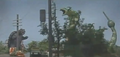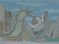 Garasharp attacked Shinjuku in Japan, prompting Gamera to arrive and battle her. During the battle, Garasharp stuck her tongue down Gamera's throat, absorbing most of Gamera's energy which paralyzed Gamera, turning him white and ballooning Garasharp to enourmous proportions. With her newly acquired strength, Garasharp proceeded to rampage through Shinjuku, devastating the area.