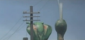 Garasharp attacking Gamera with electric blasts
