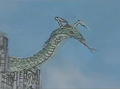 As a horde of Gyaos launched an attack, the largest Garasharp surfaced and battled the remaining Gamera. The serpent initially had the upper hand, knocking the guardian about and impaling it with its spiked tail. Realizing the battle with the Gyaos and Garasharp was just an extension of the conflict between Atlantis and the Earth itself, as constant use of mana would only cause the war to continue, Gamera unleashed his full power to destroy the mystical city. The blast destroyed a majority of the Gyaos and engulfed the final Garasharp as well.