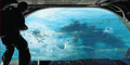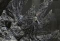 Early designs were based on dinosaurs, depicting Godzilla with his torso positioned vertically rather than horizontally like a theropod dinosaur or the TriStar Godzilla from the previous American Godzilla movie. Gareth Edwards explained "You have to steal from nature. Nature had billions of years to design Godzilla; we had one year."[10][11][12][13] However, the goal when designing the famous kaiju was to not create a monster or a Tyrannosaurus rex.[5] Gareth Edwards even rejected one design he liked that was created by Greg Broadmore on the basis that he felt it "was too much like a T. rex."[14][15] Several concepts also hearkened back to earlier Godzilla designs.[16][17] The designers looked to the natural world for inspiration, including marine creatures such as marine iguanas and large oceanic mammals. Weta Workshop designers also worked on concepts for the tail, several of which were longer than the final version.[5] One design by Christian Pearce notably featured what resembled older reconstructions of the thagomizer, the tail spikes that Stegosaurus had.[18]