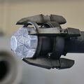 The Garuda is equipped with dual High Power Maser Beam Cannons (高出力メーサービームキャノン Kōshutsuryoku Mēsā Bīmu Kyanon).[2] Additionally, in a computer simulation run by Kazuma Aoki, the Garuda fires two additional beams from smaller cannons near the cockpit at floating targets. While these secondary cannons are present on the ship, they were ultimately unused in combat.
