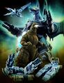 The Garuda and Mechagodzilla combining to form Super Mechagodzilla