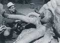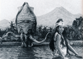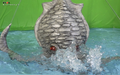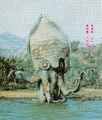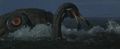 Gezora battles Ebirah in the Cretaceous period