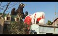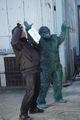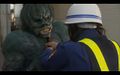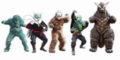The Gaira suit being fitted whilst fragments of the Godman, Tsunozillas, and Shilarji suits lay scattered on the ground
