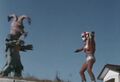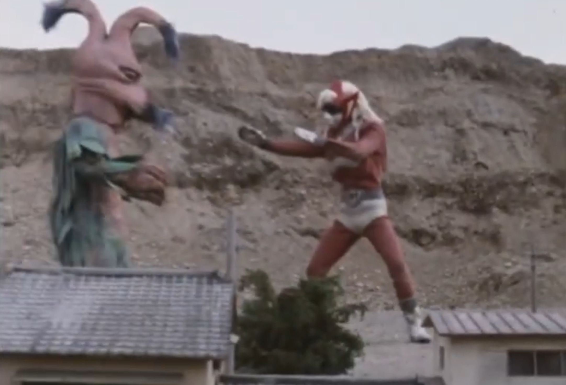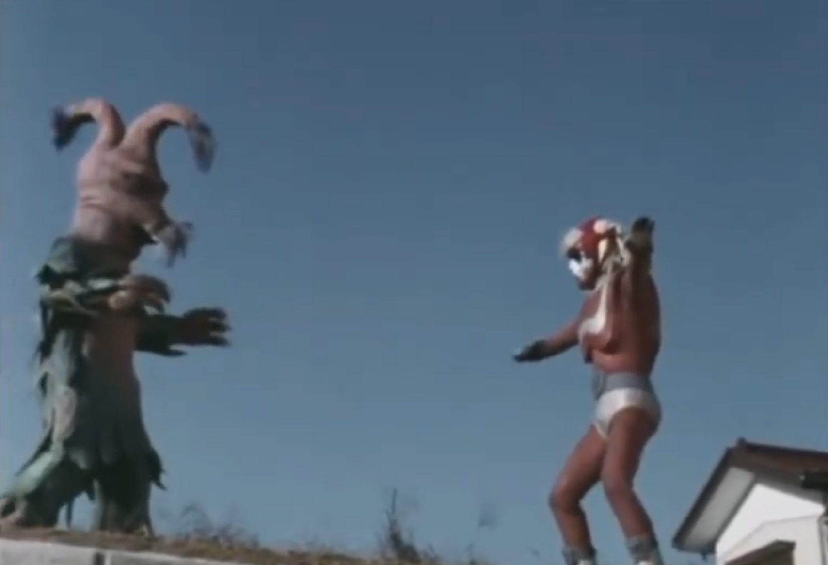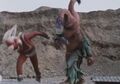Alien Tiborus appears as a group of children are playing in the dirt. Terrified when the kaiju chases them, the children call for Godman. Despite Alien Tiborus being visibly larger, Godman manages to knock him down and follows up with his God-Crush. However, the monster quickly gets back up each time. Both combatants then grow to giant size, beginning a fierce battle. Godman delivers a flurry of punches and unleashes his God-Sparks, though Alien Tiborus proves difficult to defeat. Soon, the alien kaiju counters Godman's attacks, knocking him down and kicking him repeatedly. In the end, Godman uses his God-Kick, causing Alien Tiborus's hair to turn white before the creature explodes.