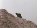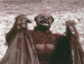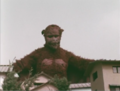 The episode begins with two boys building a mountain of rocks. Their fun is cut short when a humanoid bat monster begins to terrorize them. The boys run far away hoping to escape the beast, but the running proves useless, as Bat Man flies into the air and swoops down in front of them. The kids run away again, but this time shout for Godman. Godman flies in from overhead and descends to the ground. Bat Man cowardly begins to run from Godman, but the hero keeps after him. Eventually, they run to a field where Godman manages to catch up, but each of his blows are evaded by the monster. Godman manages to grab the monster and get a few hits off before being thrown to the side. Godman continues after him, but he eventually flies away to a nearby village and grows to giant size. Godman also enlarges and flies to the city. There, Bat Man begins to summon explosions beneath Godman's feat, but he manages to get out of the way of them. The hero charges toward Bat Man multiple times, but is evaded. He also attempts to throw God-Cirlces, but they are knocked out of the air before they're able to explode. Bat Man then begins to run through mountainous terrain trying to lose Godman, but they end up running into one another. Godman makes an effort to defeat Bat Man, but the kaiju's strength coupled with the explosives gives him the edge. Realizing this, Godman summons the God-Crush to turn the tides. Bat Man is pummeled with the weapon and flies up the mountain. Seeing it as a perfect opportunity to use the Super Sonic Wave attack, Godman does so, causing Bat Man to explode.
