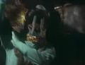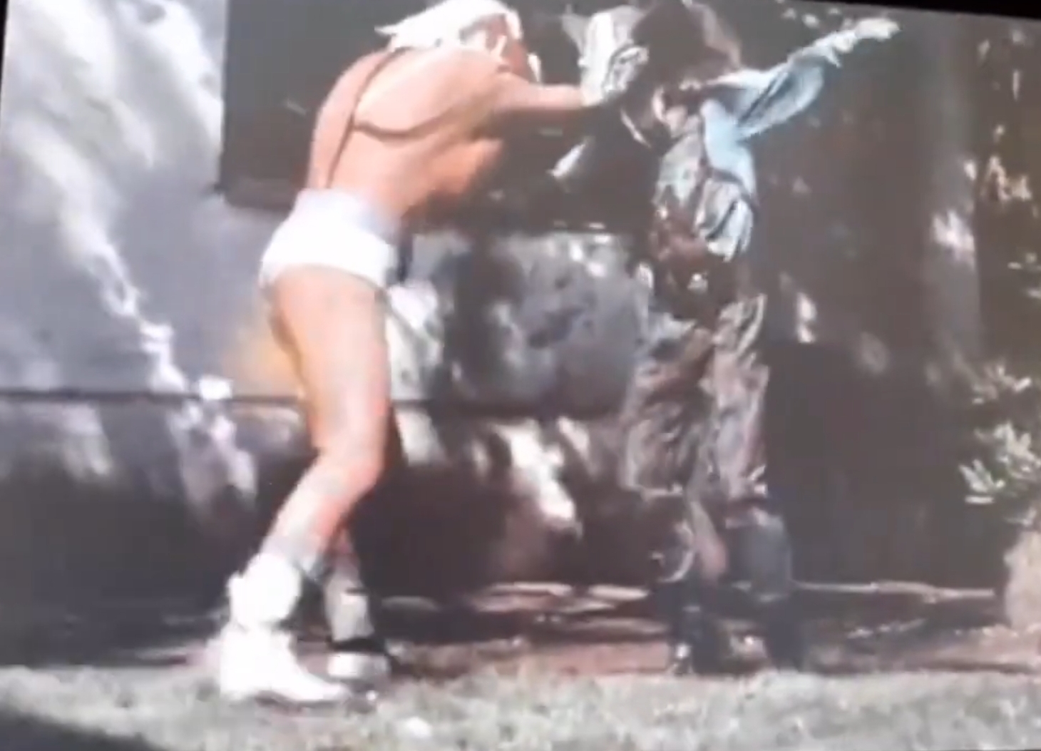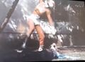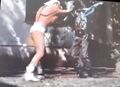 A man appears searching for something with a lantern. While looking, he encounters Hotter. The man flees, but soon runs into Hotter again, causing him to panic and flee once more. Hotter then confronts Godman, summoning his Whip. Despite repeatedly trying to strike Godman, his attacks miss, and both fall to the ground. They quickly rise, with Godman hiding behind a tree, only to be discovered and attacked, becoming surrounded. Godman manages to seize Hotter's Whip, forcing the monster into a fair fight.