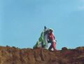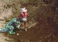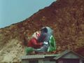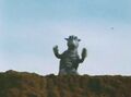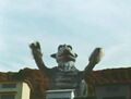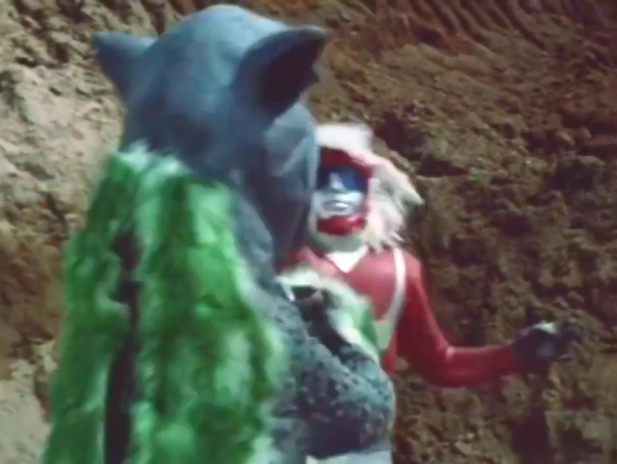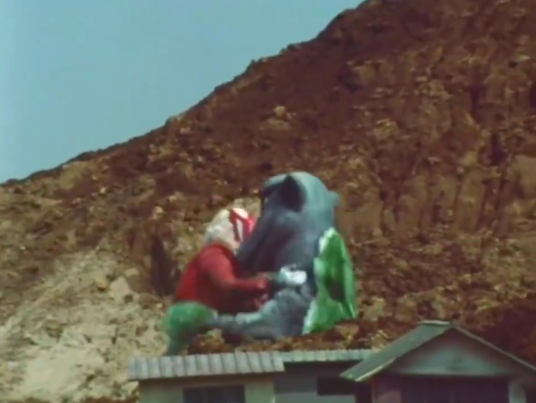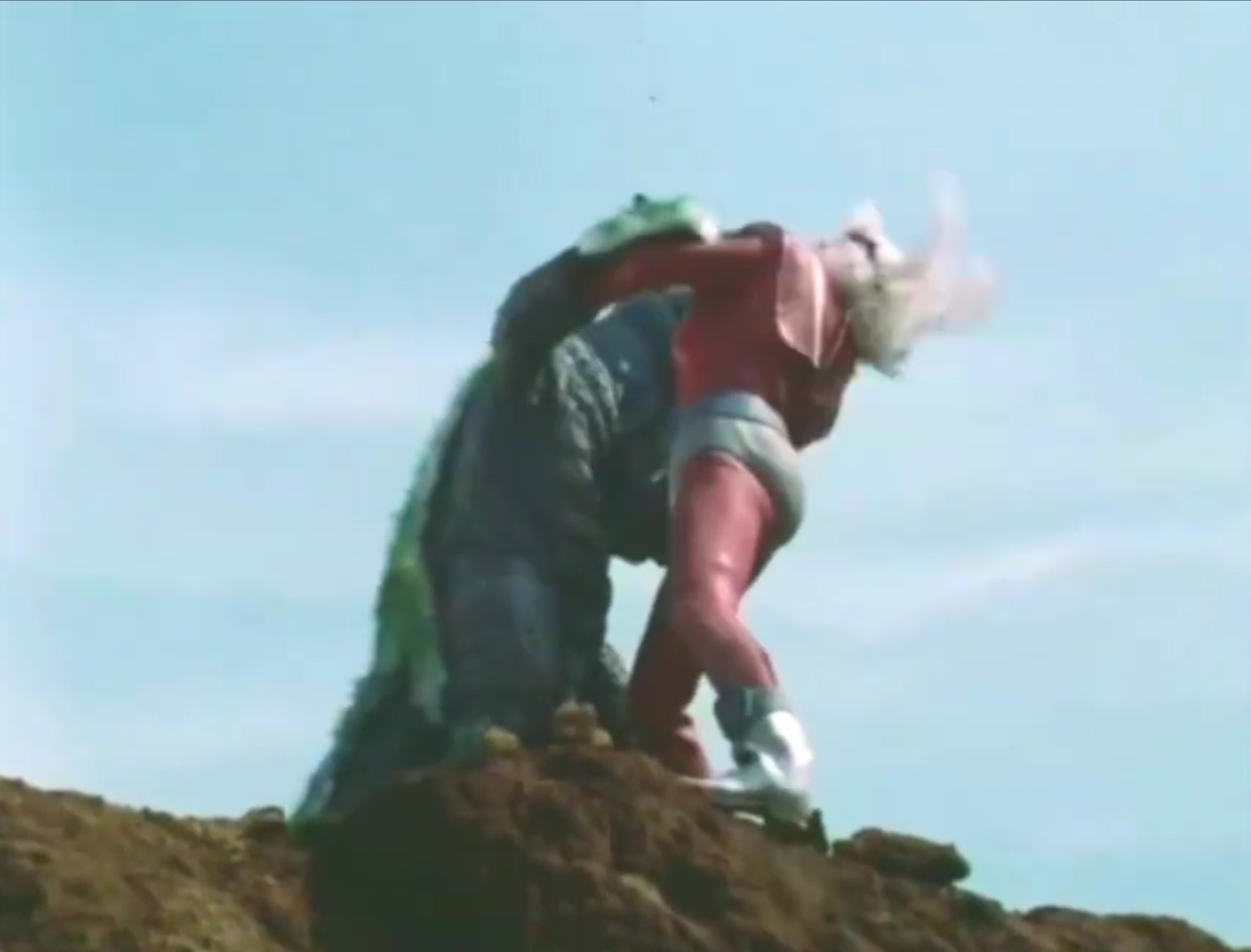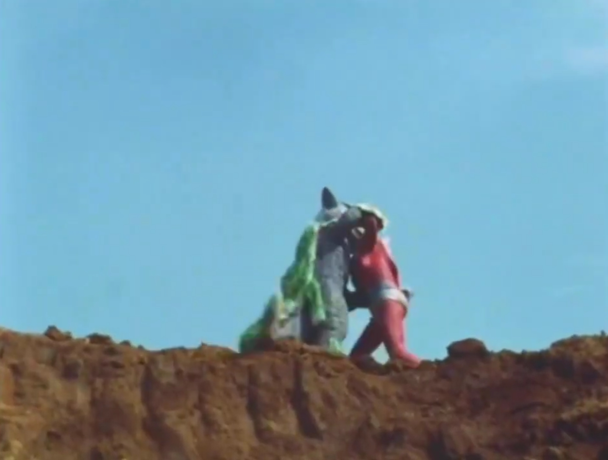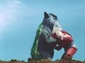A barking dog is mocked by a group of children and suddenly transforms into Hundler. Frightened, the children call for Godman, who quickly arrives to confront the monster. At first, Godman dominates the battle while Hundler appears clumsy in his attacks. However, Hundler manages to grab Godman by the arms and nearly pushes him over a cliff. Although Godman escapes, the fight continues with Hundler becoming more aggressive, which balances the battle. Godman puts enough distance between them to unleash his God-Sparks, though they are not enough to finish the monster. In the end, Godman delivers a decisive kick, sending Hundler plummeting into the abyss where he explodes upon impact. After his victory, Godman celebrates with the rescued children.