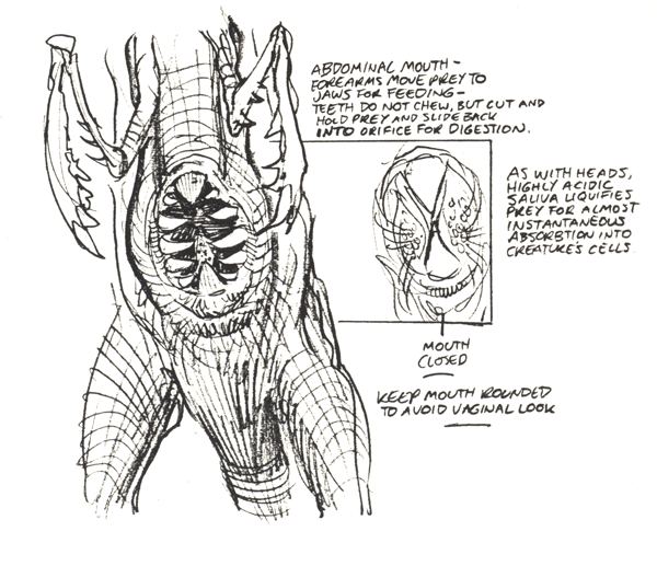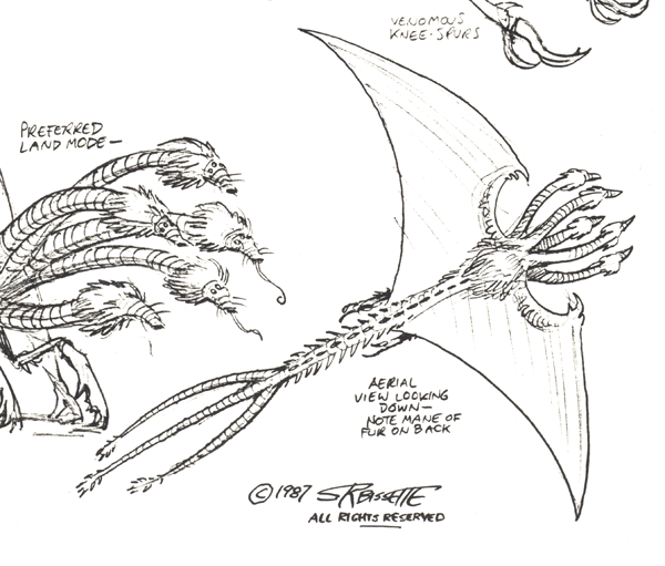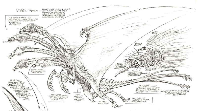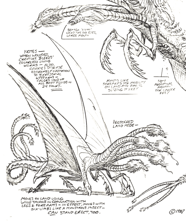 "Unamed Monster" later dubbed "Horrisaur" design proposal sketch by Steve Bissette [10]