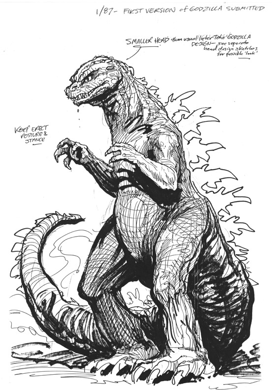 Revised "Godzilla" design proposal sketch by Steve Bissette[2]