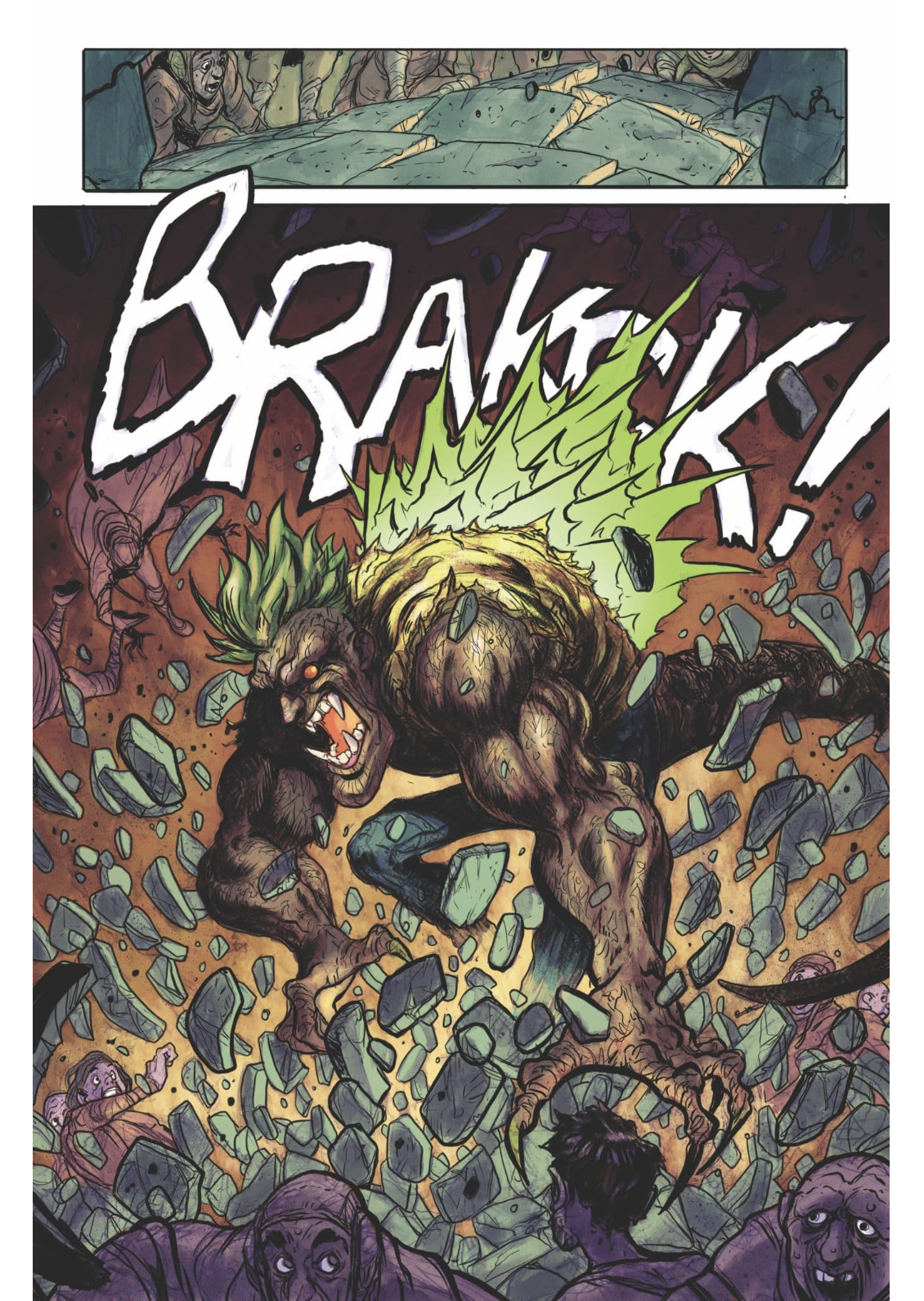 In Mutant City, formerly Portland, Norman's partner brings their six-year relationship to its inevitable end. While smoking a cigarette outside, he is approached by an acolyte of the Church of Godzilla, who hands him a pamphlet. The Wanderer asks the girl he rescued what her name is, but she only asks for her brother, who turns out to have been controlling the other monster, bursting out of its head. He refers to her as Glasseater and angrily demands that the Wanderer put her down just before tranquilizer darts knock out both kids. A third dart bounces off the Wanderer; irritated, he advances on the shooter. Their superior calls for a gas canister instead, which quickly renders him unconscious as well.