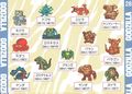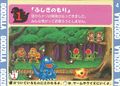 The first page is a forest, and features Sanda, Gaira, Gorosaurus, Mothra, Kamacuras, Kumonga, Dogora, two Biollantes and the Cosmos. Clicking on Godzilla causes him to dance, after which everyone on the page will applaud. Eventually, a large spotted egg will drop down onto the screen, startling everyone on the page. If Godzilla interacts with the egg, it will hatch into LittleGodzilla. Interacting with Sanda and Gaira causes them to punch and kick each other. Interacting with the Biollantes causes them to briefly shift from their rose forms to their final forms and roar at Godzilla. Interacting with the Cosmos causes them to sing, which will briefly summon Mothra onto the screen, who roars and flies offscreen again. Occasionally, Kumonga, Dogora, or Kamacuras may appear through the trees on the top of the screen. Gorosaurus is constantly stalking Godzilla from behind the trees. Interacting with him activates a minigame. In this game, Godzilla ties balloons to his tail and competes with Gorosaurus to jump into the sky and grab stars. Whichever monster has more stars in their possession by the end wins. A second minigame is available on the page, which appears to be initiated randomly. This minigame consists of the Cosmos standing on a teeter-totter. A kaiju - either Godzilla, Biollante, Mothra larva, Dogora, Kumonga, or Kamacuras- will be placed on one side of the teeter-totter, and the player must balance it by placing other kaiju or differently-sized weights on the other side. After the player successfully does this multiple times, the game is complete. Another minigame that also appears to happen randomly features Godzilla standing next to three differently-sized rocks, and three differently-sized holes. Godzilla will grab one of the rocks, and the player must choose which of the three holes it fits into. After the player does this correctly for all three rocks, the game will be complete.