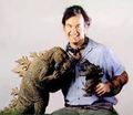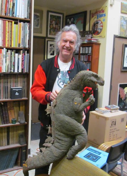 William Stout with a Godzilla concept statue and a figure of the KingGoji