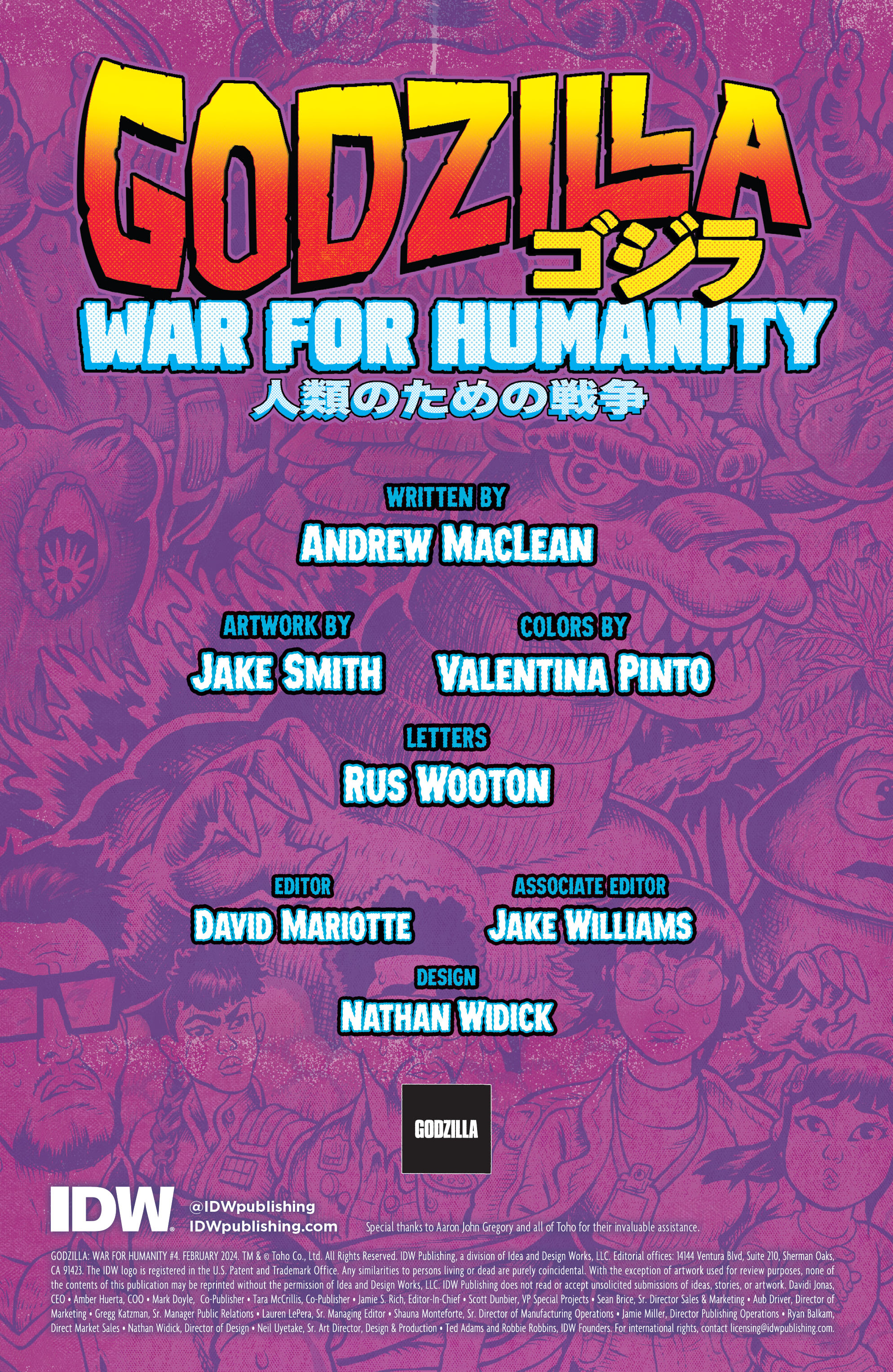 Godzilla: War for Humanity #4 is a comic book from IDW Publishing. It was published on February 28, 2024.[1]