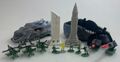 Sort of a precursor to the 1998 GODZILLA toy line's human figures, Trendmasters made figures of humans and the Garuda that were part of a group called Godzilla Force, similar to the G-Force organization from the last three Heisei Godzilla films. The figures come with battle armor, weapons, a Godzilla Force badge, and a collectible trading card. The Garuda toy came with its own smaller pilot figure. These toys are only 4 inches tall, with the Garuda being 4 inches long. Figures that are part of Godzilla Force include: