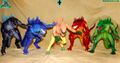 - Godzilla (versions: green-colored; aqua blue-colored)