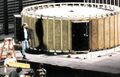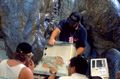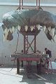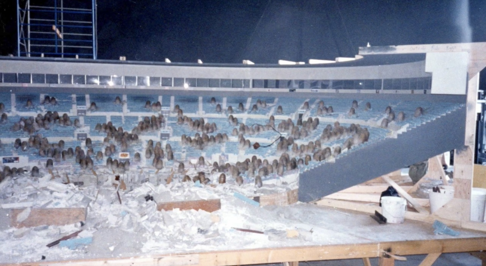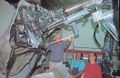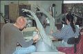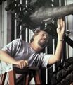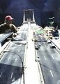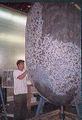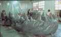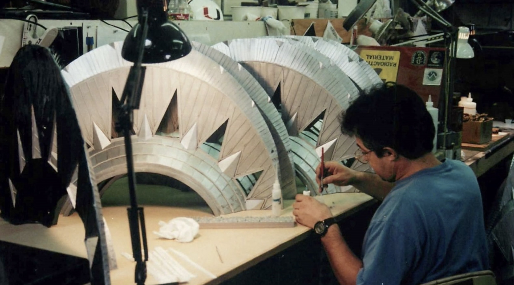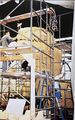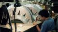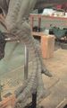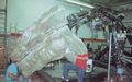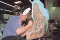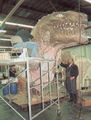 Actor Kurt Carley donning the unfinished Godzilla suit