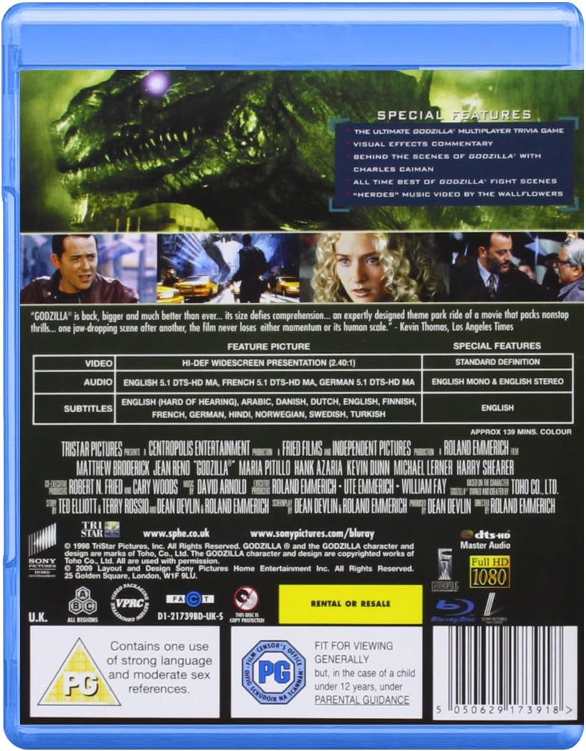 1998 TriStar GODZILLA VHS back