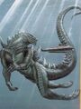 Godzilla digging underwater concept art