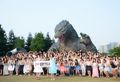 On July 21, 2014, Toho staged a talk event with 100 young women who weren't interested in seeing Godzilla at the Tokyo Midtown shopping and entertainment complex.[47] Godzilla actor Shiro Sano, Godzilla voice actress Haru, and film commentator LiLiCo were there, and by the end of the event got many of the girls interested. They all then took a picture with the Godzilla statue.