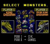 - While multiple different incarnations of King Ghidorah and Mechagodzilla appear as combatants in this game, the game distinguishes between them by calling them by different English names. The Showa King Ghidorah is referred to as simply "Ghidorah" with the subtitle "Monster 0," while the Heisei incarnation is called "King Ghidorah" with the subtitle "Three Headed Dragon." Both models of the Showa Mechagodzilla are referred to as "MG1" and "MG2" with the subtitle "Alien's Weapon," with the Heisei version instead designated "Super MG" and with no subtitle given.
