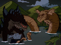 Godzilla fighting the Swamp Beast