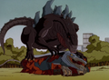 Godzilla fighting Cryptocledius in Godzilla The Series: Monster Wars